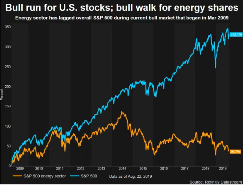 The energy industry experienced a dismal close at the end of fiscal year 2018 in August of last year. It clocked out as the worst-performing sector of the S&P 500 sectors since the start of the bull market that preceded the 2008 financial crisis and its brief aftershock two years after. Oil prices fluctuated with the market, but rallies were never the scale they were hoped to be. The energy sector as a whole performed even worse, according to Reuters columnist Lewis Krauskopf, “even [failing] to keep pace with oil prices, despite their traditional tendency to move in the same direction.” According to Greenwood Capital chief investment officer Walter Todd, “The view of the sector in general has gotten to a point where it’s a very difficult space for institutional investors to embrace because it’s been such a chronic underperformer.” Pearce Hammond, the Managing Director of Equity Research at Simmons Energy reportedly stated that “Investors have become wary of energy companies in the past out-spending their cash flows and of drilling wells without adequate returns.”